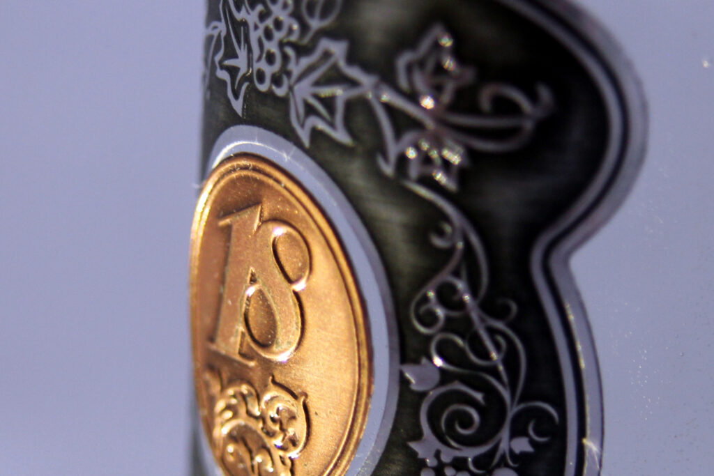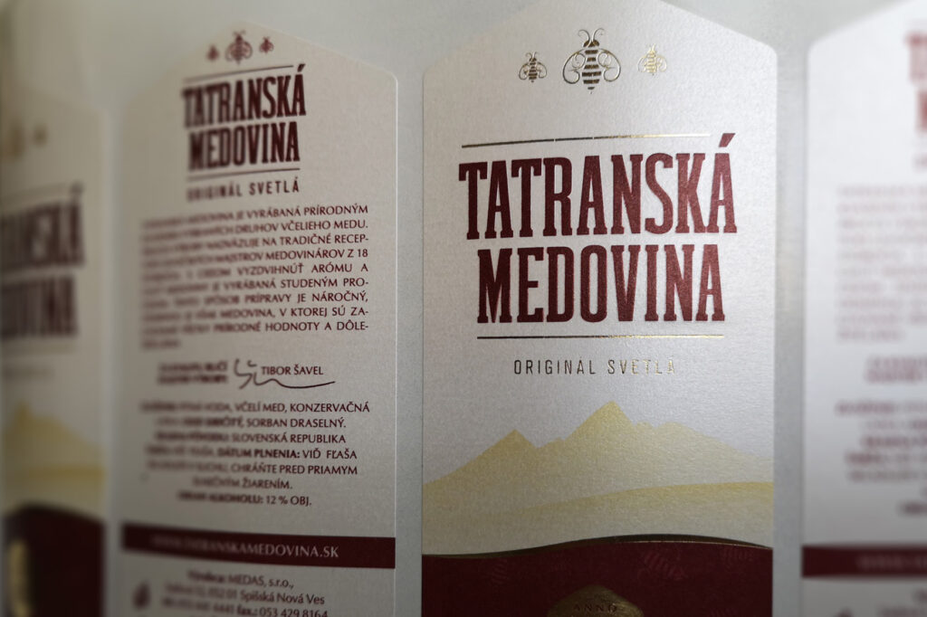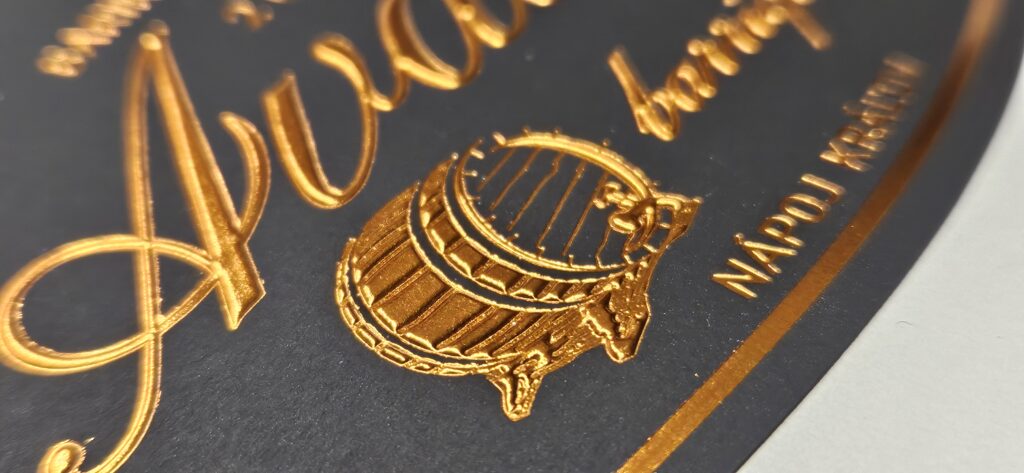 Samolepiaca etiketa zo štruktúrovaného materiálu je vhodná na luxusnejšie nápoje, destiláty, potraviny, kozmetiku a pod.